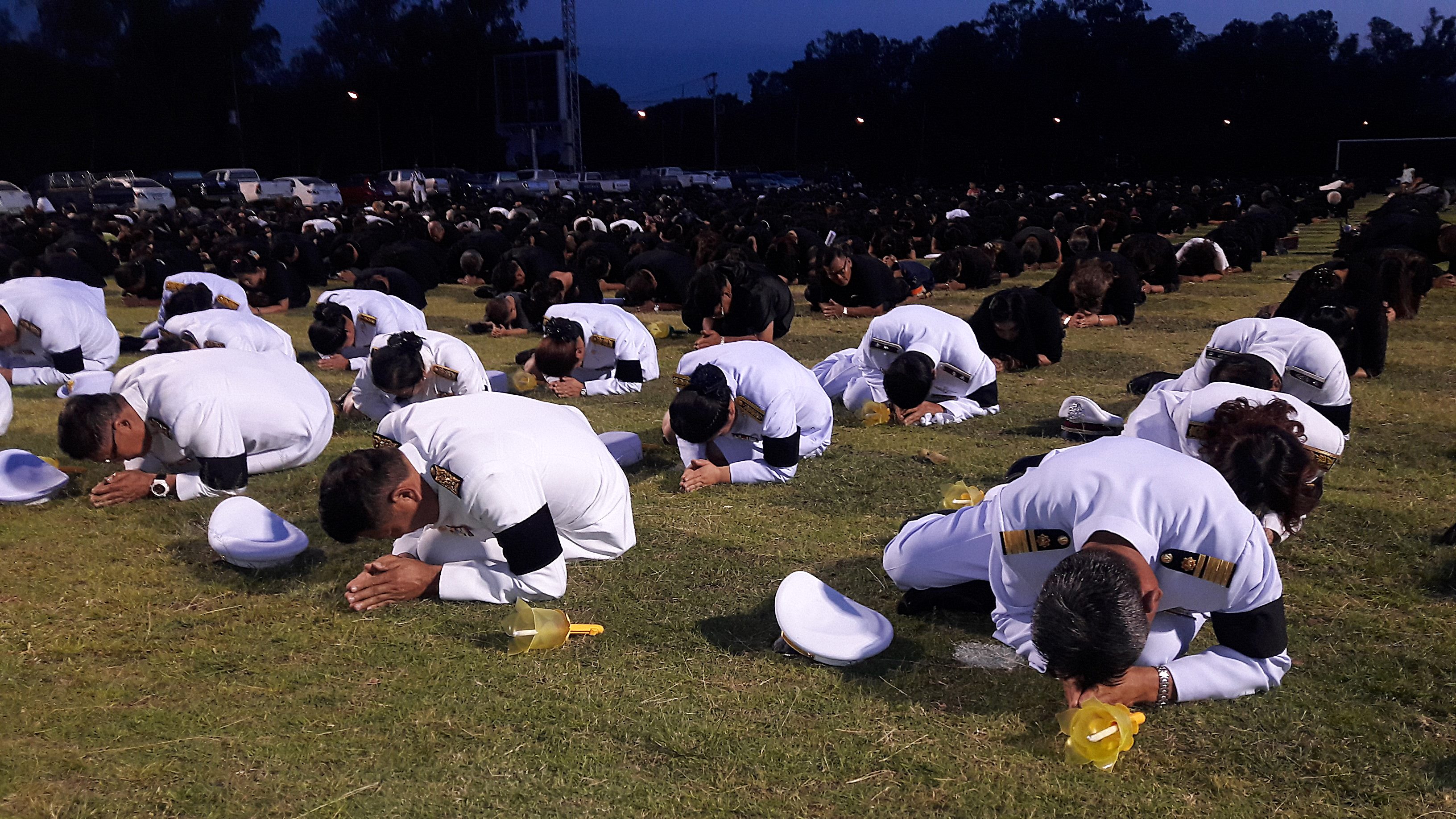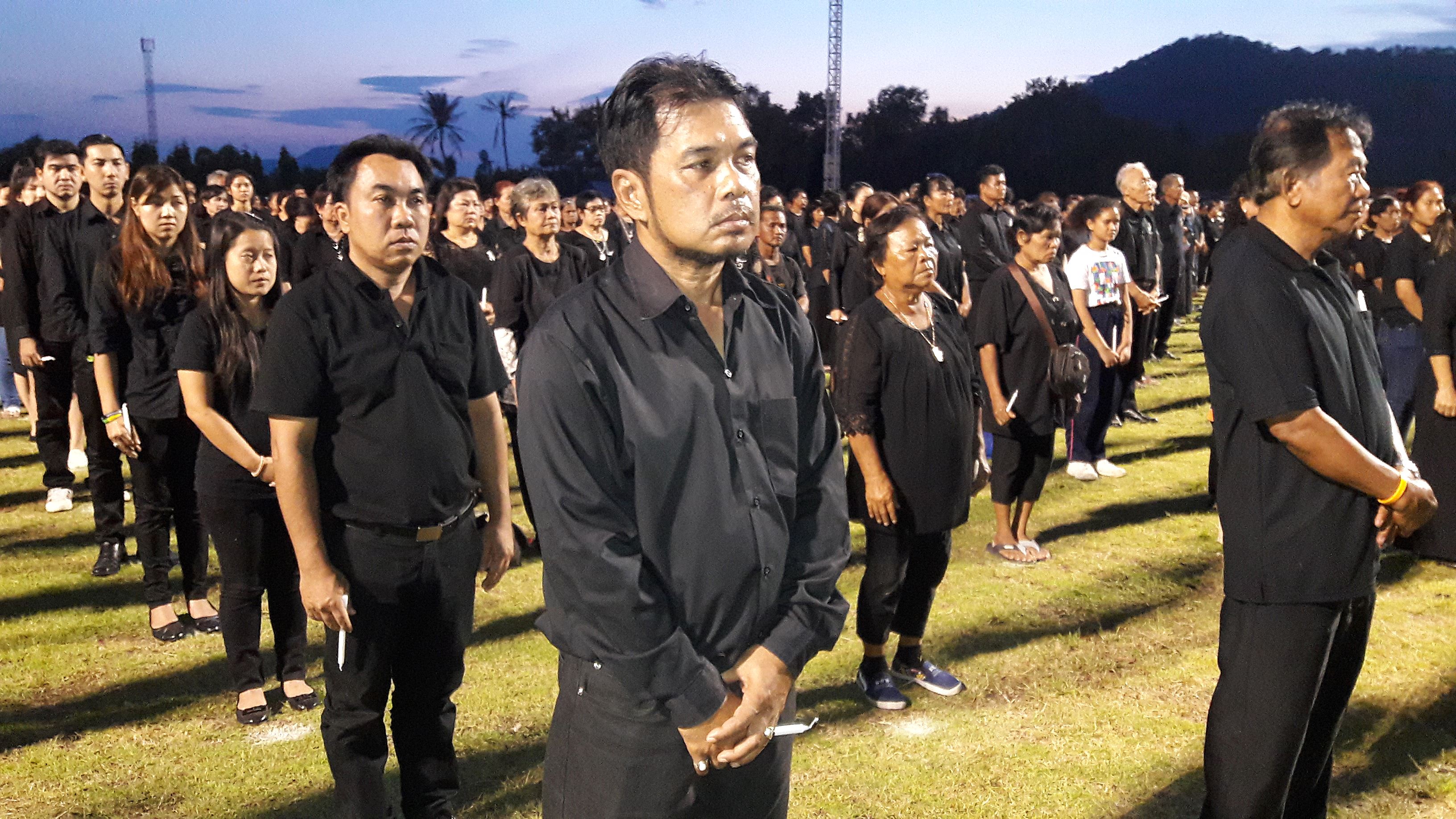 โดยนายวรญาณ บุญณราช นายอำเภอศรีราชา ได้เป็นประธานจุดธูปเทียนเครื่องทองน้อย ถวายสักการะ และลดตัวลงแล้วก้มลงกราบแผ่นดินเบื้องหน้าพระบรมฉายาลักษณ์พระบาทสมเด็จพระปรมินทรมหาภูมิพลอดุลยเดช จากนั้นกล่าวแสดงความอาลัยแด่พระบาทสมเด็จพระปรมินทรมหาภูมิพลอดุลยเดช ก่อนจะนำยืนสงบนิ่งเป็นเวลา 89 วินาที เพื่อน้อมรำลึกถึงพระมหากรุณาธิคุณพระบาทสมเด็จพระปรมินทรมหาภูมิพลอดุลยเดช ก่อนจะจุดโคมเทียน และร่วมร้องเพลงสรรเสริญพระบารมี อย่างพร้อมเพรียงกันดังกึกก้องทั่วสนาม.....