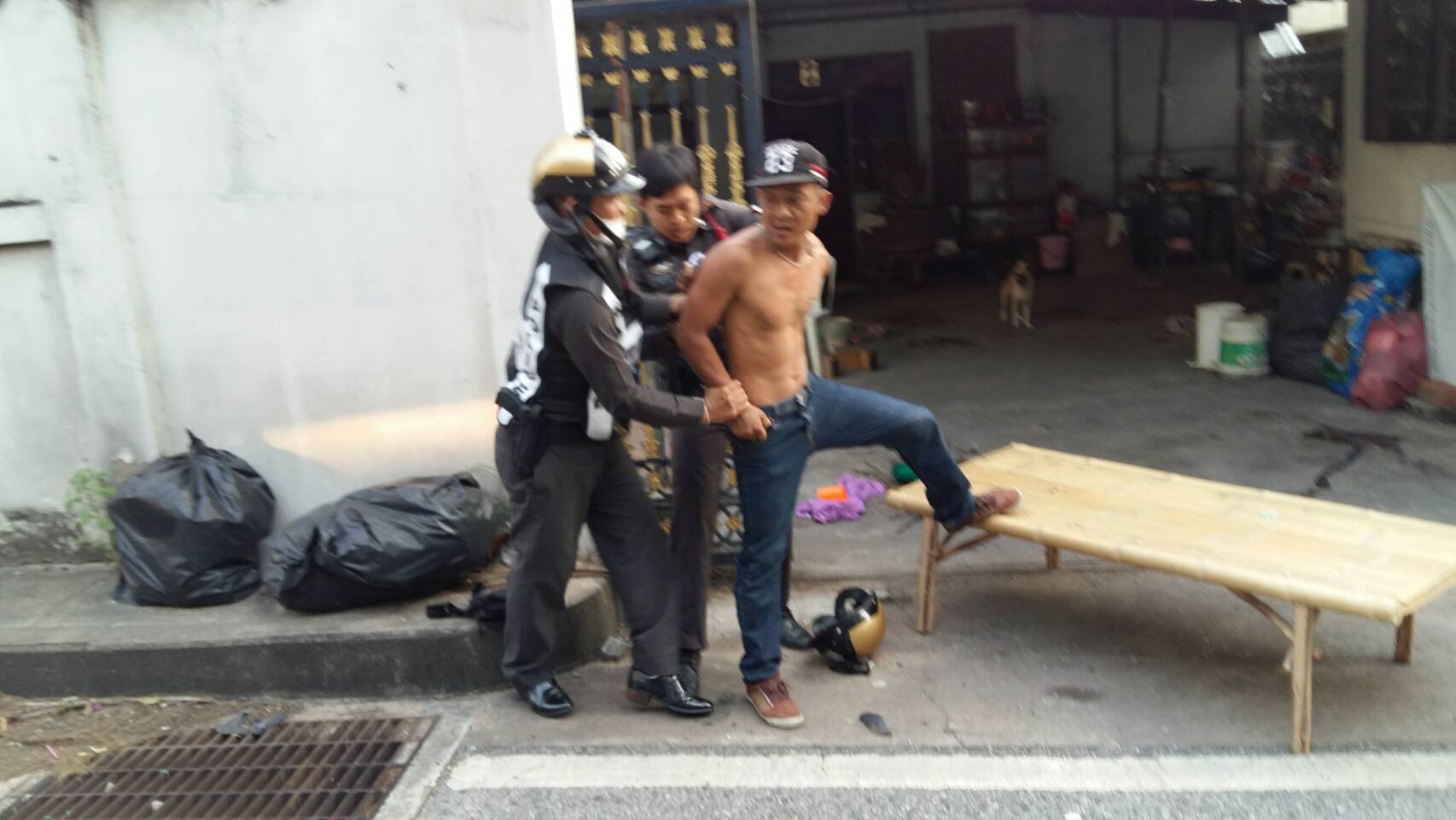 เจ้าหน้าที่ตำรวจภูธรศรีราชา ได้รับแจ้งว่า มีเหตุชายคลุ้มคลั่งใช้มีดไล่แทงชาวบ้าน ที่ บ้านเลขที่ 70 /10 ภายในซอยข้างโรงเรียนอัสสัมชัญ ศรีราชา หมู่ 2 ตำบลสุรศักดิ์ อำเภอศรีราชา จังหวัดชลบุรี หลังรับแจ้งจึงเดินทางไปตรวจสอบ พบนายวิโรจน์ บุญส่ง อายุ 30 ปี เดินถือมีดกวัดแกว่งอยู่ภายในบ้าน มีอาการคลุ้มคลั่ง ก่อนหน้านี้ก็ได้ใช้เข้าทำร้าย นางสาววิลาวรรณ บุญส่ง อายุ 32 ปี จนได้รับบาดเจ็บ ก่อนมีดไล่ฟันรถจักรยานยนต์ที่จอดในบ้านแล้วขู่ใช้มีดไล่ฟันภายในบ้าน เมื่อเจอตำรวจยังจะใช้มีดเข้ามาไล่ฟันตำรวจอีก จนต้องพยายามเจรจาจนยอมวางมีดลง จากนั้นตำรวจจึงบุกเข้าชาร์จจับกุมไว้นำตัวส่งสถานีตำรวจภูธรศรีราชา เพื่อตรวจหาสารเสพติดเนื่องจากนายวิโรจน์เพิ่งผ่านการบำบัดยาเสพติดมาเมื่อปลายปีที่ผ่านมา ก่อนดำเนินการตามขั้นตอนกฎหมายต่อไป