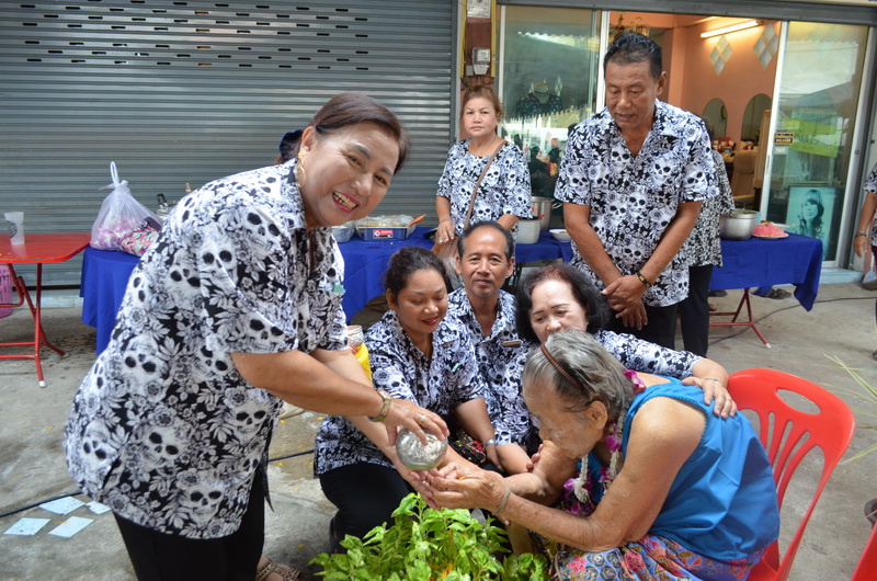 ชาวชุมชนตลาดบน บางพระ จัดกิจกรรมวันสงกรานต์ ร่วมรดน้ำดำหัวขอพรผู้สูงอายุและก่อพระทราย