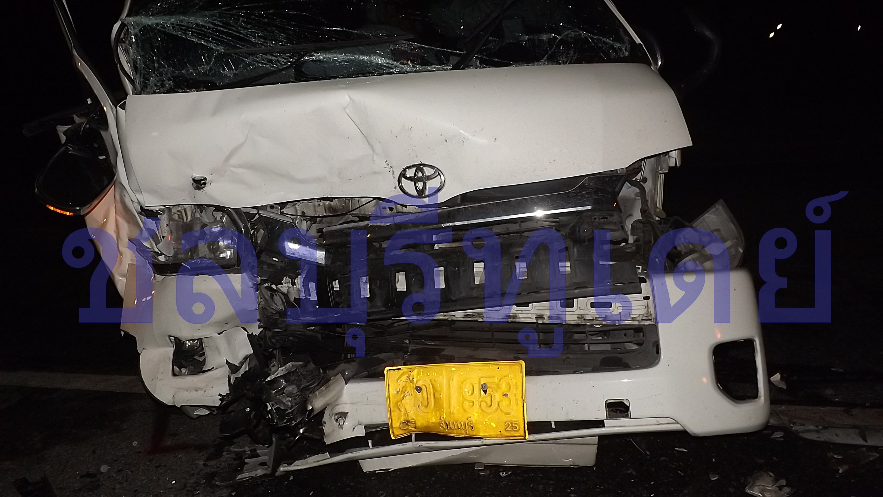 รถตู้เสียหลักหลุดโค้งพุ่งชนรถสปอตร์ไรเดอร์ ที่วิ่งสวนทางมาอย่างแรงทำให้คนที่นั่งมาได้รับบาดเจ็บ