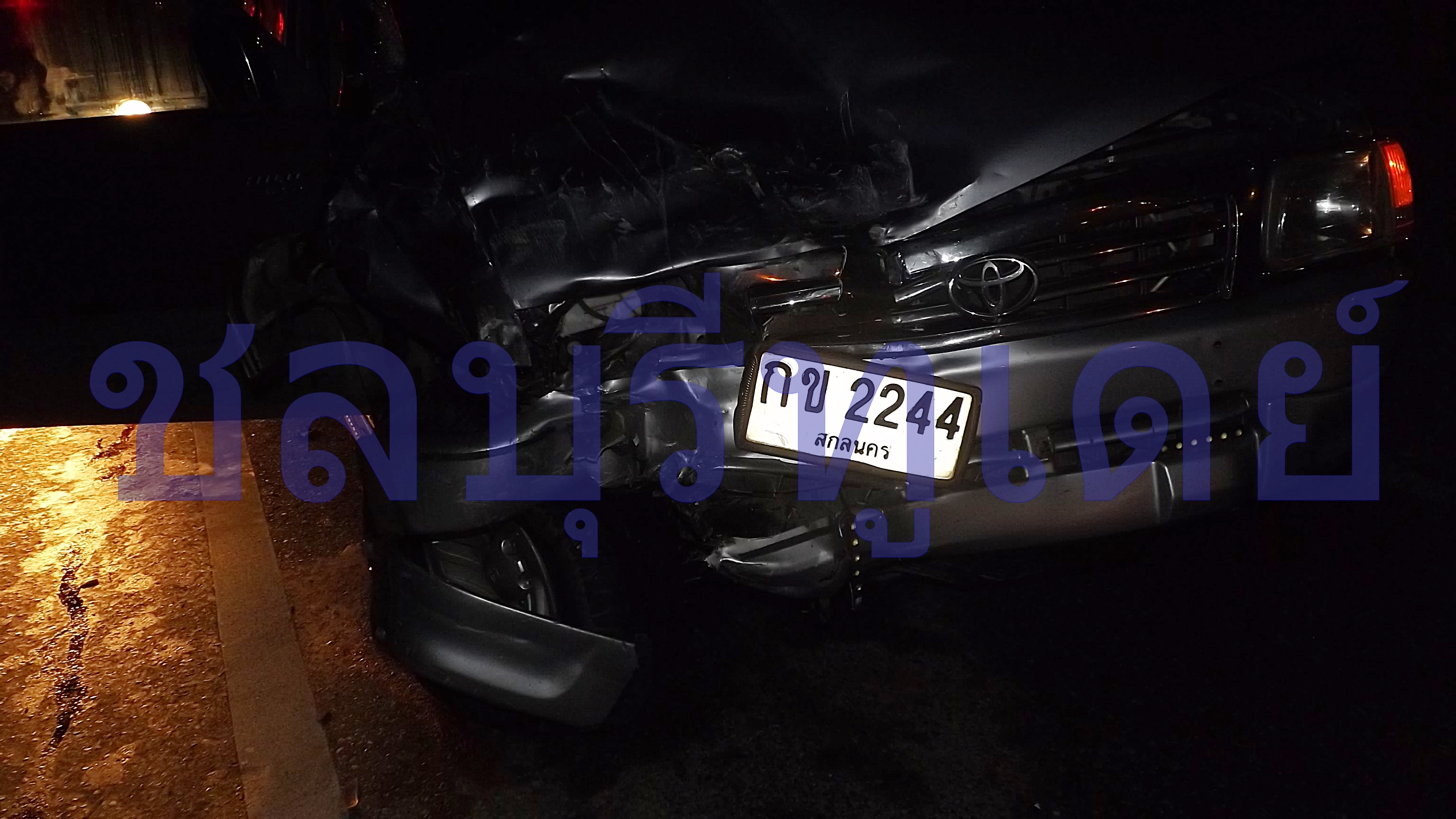 เมื่อช่วงเช้ามืดวันนี้(25 เม.ย. 2560) ศูนย์วิทยุหน่วยกู้ภัยเพียวเยี้ยงไท้ศรีราชา จ.ชลบุรี รับแจ้งเหตุรถตู้ชนกับรถยนต์รุ่นสปอตร์ไรเดอร์ และมีผู้บาดเจ็บอยู่ในรถเส้นทางสวนเสือ-หนองค้อ ตำบลหนองขาม อำเภอศรีราชา หลังรับแจ้งจึงรีบประสานทีมแพทย์โรงพยาบาลพญาไทศรีราชาพร้อมหน่วยกู้ภัยเพียวเยี้ยงไท้ศรีราชาเข้าตรวจสอบและช่วยเหลือผู้บาดเจ็บ เมื่อไปถึงพบทีมแพทย์โรงพยาบาลพญาไทศรีราชาพร้อมหน่วยกู้ภัยกำลังช่วยเหลือผู้บาดเจ็บเป็นหญิง 1 ราย ซึ่งมีอาการปวดต้นคอและปวดหลังอยู่ที่เบาะหน้าฝั่งซ้ายในรถโตโยต้า สปอตร์ไรเดอร์ สีน้ำเงิน หมายเลขทะเบียน กข-2244 สกลนคร สภาพด้านหน้ารถพังเสียหายจอดอยู่ข้างทาง ส่วนคนขับเป็นชายบาดเจ็บเล็กน้อย ใกล้กันพบรถตู้ยี่ห้อโตโยต้า สีขาว หมายเลขทะเบียน 30-1953 จันทบุรี สภาพด้านหน้าพังเสียหายเช่นกันขวางอยู่บนถนนโดยคนขับมายืนรอเจ้าหน้าที่อยู่ที่เกิดเหตุ และเมื่อทีมแพทย์และหน่วยกู้ภัยทำการบล็อกคอและหลังผู้บาดเจ็บแล้วจึงได้ช่วยเหลือนำออกมาจากรถแล้วทำการปฐมพยาบาลก่อนเคลื่อนย้ายนำส่งรักษาต่อที่โรงพยาบาลสมเด็จพระบรมราชเทวี ณ ศรีราชา คนขับรถยนต์รุ่นสปอตร์ไรเดอร์ เล่าว่า ตนกำลังขับมามุ่งหน้าทางตัวเมืองศรีราชาพอมาถึงที่เกิดเหตุรถตู้คันดังกล่าวได้ขับมาแล้วเสียการทรงตัวพุ่งมาชนกับรถตนอย่างแรงจนเป็นเกิดเหตุดังกล่าวขึ้น ทางเจ้าหน้าที่จึงได้บันทึกภาพที่เกิดเหตุไว้เป็นหลักฐานพร้อมจะได้ทำการสอบสวนถึงสาเหตุที่แน่ชัดอีกครั้งเพื่อดำเนินคดีกับผู้ขับขี่โดยประมาทจนทำให้เกิดเหตุครั้งนี้