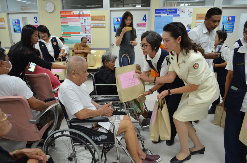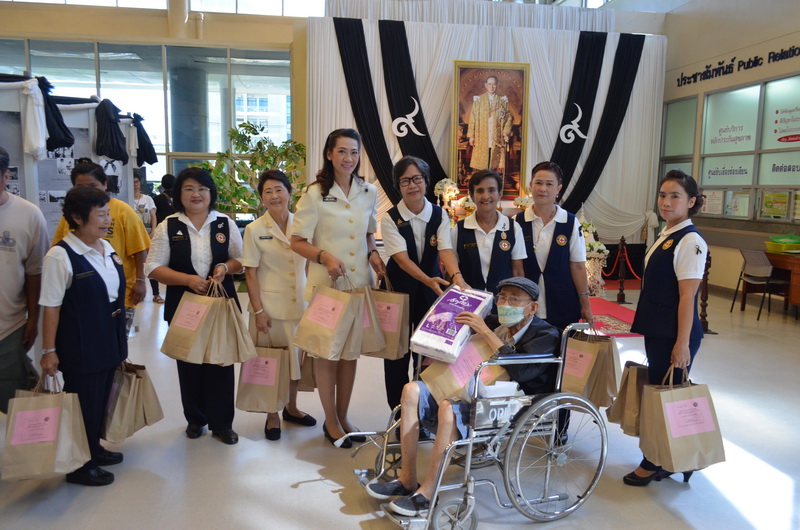 ที่ อาคารอนุสรณ์ 100 ปี โรงพยาบาลสมเด็จพระบรมราชเทวี ณ ศรีราชา นางอัญชลี บุญณราช ประธานแม่บ้านมหาดไทยอำเภอศรีราชา ผู้แทนจากอำเภอศรีราชาได้นำถุงยังชีพ และแพมเพิรส มามอบให้กับทางโรงพยาบาลสมเด็จพระบรมราชเทวี ณ ศรีราชา เพื่อนำไปแจกจ่ายให้ผู้ป่วยที่มีความต้องการ จากนั้นได้ร่วมกับเหล่าอาสากาชาดปฏิบัติงานโรงพยาบาลสมเด็จพระบรมราชเทวี ณ ศรีราชา ได้จัดกิจกรรม อาสา โรงทานอิ่มอุ่น แจกอาหารน้ำดื่ม และขนม ให้กับผู้ป่วยที่มารับบริการตรวจรักษาโรค เพื่อเป็นการทำบุญเนื่องในวันครบรอบ 16 ปี การก่อตั้งอาสากาชาดปฏิบัติงานในโรงพยาบาลสมเด็จพระบรมราชเทวี ณ ศรีราชา ซึ่งได้เริ่มก่อตั้งเมื่อวันที่ 1 มิถุนายน 2544 โดยเหล่าอาสากาชาดที่ก่อตั้งขึ้นจะได้รับการอบรมการปฏิบัติงานจากสภากาชาดไทย เพื่อช่วยเหลืองานในด้านต่างๆของโรงพยาบาล อาทิ การกรอกประวัติผู้มารับบริการ ช่วยคัดกรองผู้ป่วย เป็นต้น โดยอาสากาชาดปฏิบัติงานในโรงพยาบาลจะมีอยู่ 2 โรงพยาบาลได้แก่โรงพยาบาลจุฬาลงกรณ์ และโรงพยาบาลสมเด็จพระบรมราชเทวี ณ ศรีราชา ซึ่งจะปฏิบัติหน้าที่ด้วยจิตอาสาไม่มีค่าตอบแทนใดๆ ในส่วนของโรงพยาบาลสมเด็จพระบรมราชเทวี ณ ศรีราชา มีอาสากาชาดปฏิบัติงานโรงพยาบาลอยู่กว่า 100 คน ประจำอยู่จุดให้บริการทั่วโรงพยาบาลกว่า 10 จุด ซึ่งก็ทำให้ผู้มารับบริการได้รับความสะดวกสบายและรวดเร็วเพิ่มมากขึ้น