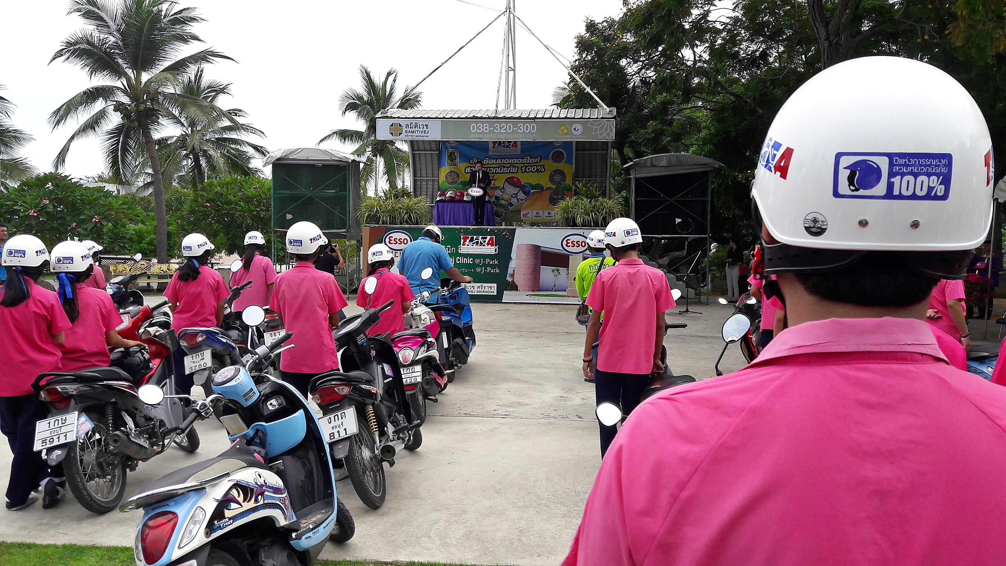 วันนี้ (28 มิถุนายน 2560) ที่ บริเวณสวนสุขภาพเกาะลอย เทศบาลเมืองศรีราชา นายธานี รัตนานนท์ นายกเทศมนตรีเมืองศรีราชา ได้เป็นประธานเปิดโครงการรณรงค์ “เสริมสร้างวัฒนธรรมความปลอดภัย สวมหมวกนิรภัย 100%” ครั้งที่ 2 เพื่อให้เกิดวัฒนธรรมความปลอดภัยในขณะขับขี่รถจักรยานยนต์ โดยมี นายนุกิจ ชลคุป ผู้จัดการด้านความปลอดภัย อาชีวอนามัย และสิ่งแวดล้อม บริษัท เอสโซ่ (ประเทศไทย) จำกัด (มหาชน) พร้อมด้วย คุณอิศรา สุนทรวิภาต ที่ปรึกษาฝ่ายกิจกรรมองค์กรและรัฐกิจสัมพันธ์ และคุณทิพสุคนธ์ ดวงทิพย์ ผู้จัดการประชาสัมพันธ์และบริหารสำนักงาน บริษัท เอสโซ่ ก่อนจะร่วมกันปล่อยขบวนรถจักรยานยนต์สวมหมวกนิรภัย 100% ขับวิ่งรณรงค์ไป ซึ่งมีนักเรียน นักศึกษา และประชาชนเข้าร่วมโครงการนี้จำนวนมาก
