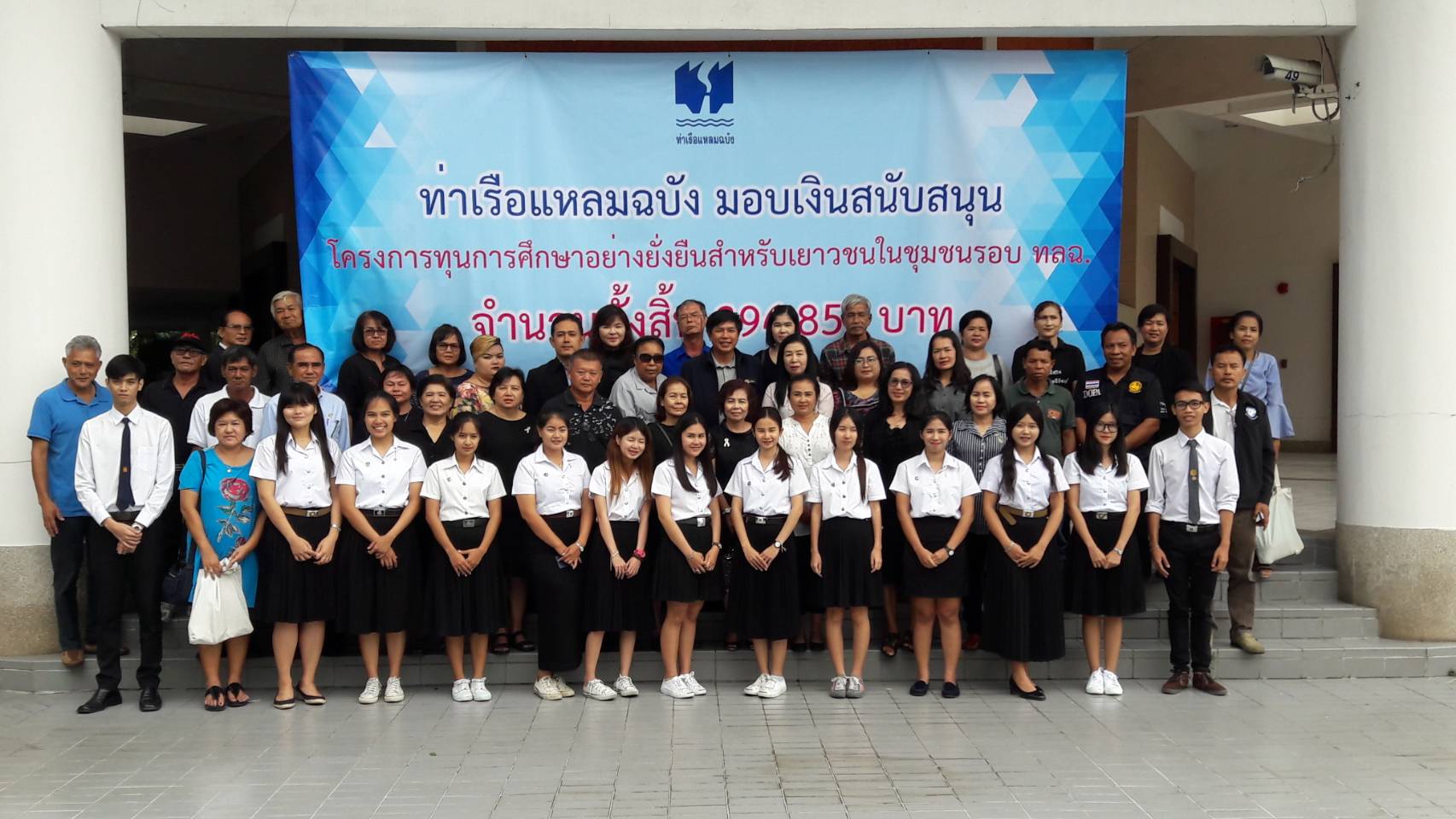 โดยท่าเรือแหลมฉบัง ได้สนับสนุนงบประมาณการดำเนินโครงการทุนการศึกษาอย่างยั่งยืนสำหรับเยาวชนในชุมชนรอบท่าเรือแหลมฉบัง ตั้งแต่ปีงบประมาณ 2557-2560 เป็นเงินทั้งสิ้นกว่า 1.5 ล้านบาท และในปีงบประมาณ 2560 มีนักศึกษาที่ได้รับทุนการศึกษาในเทอมที่ 2 ของปีการศึกษา 2560 พี่รวมทั้งสิ้น 27 คน จาก 25 ชุมชนที่อยู่โดยรอบท่าเรือแหลมฉบัง รวมเป็นเงินทั้งสิ้น 394,850 แสนบาท