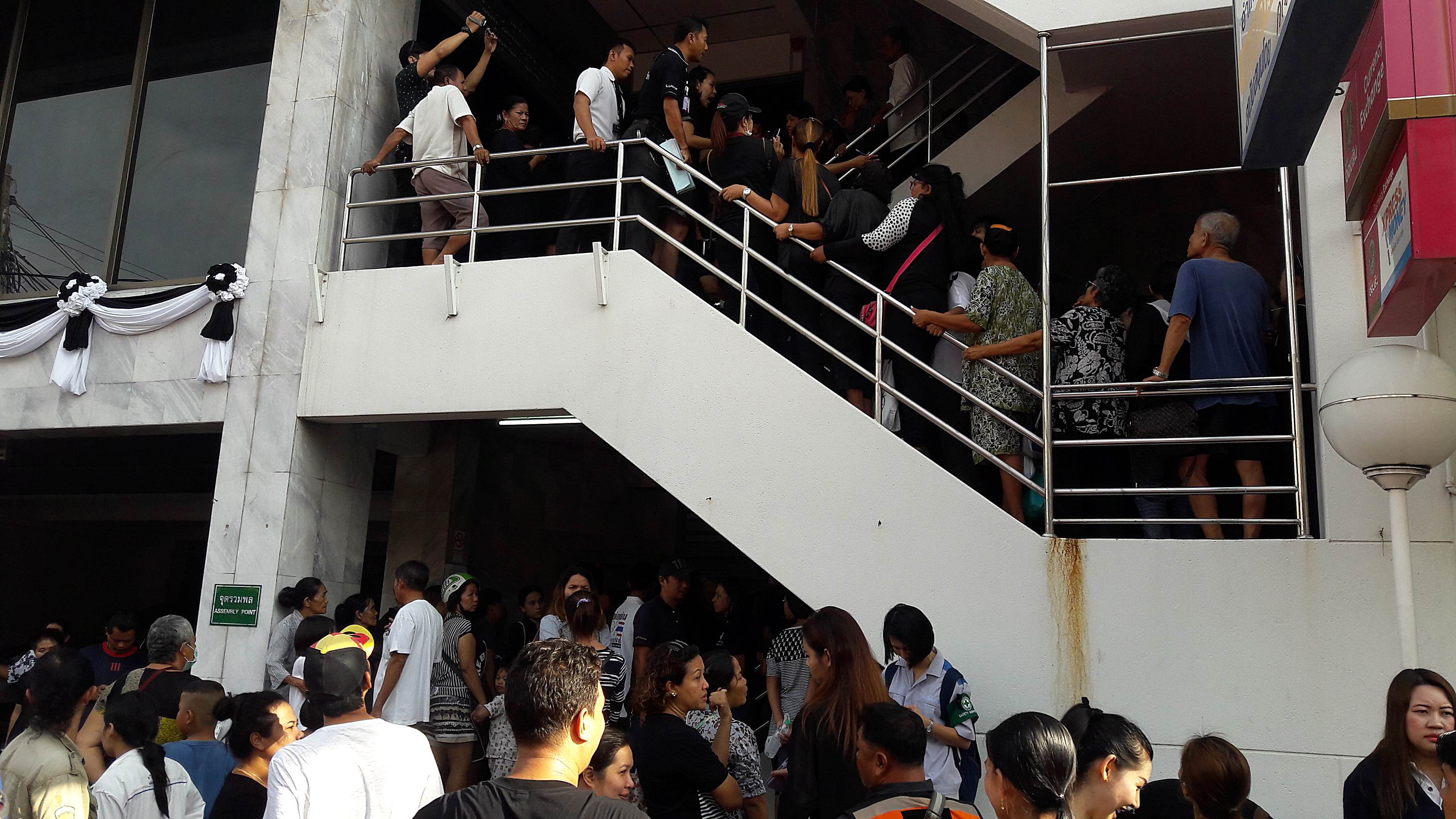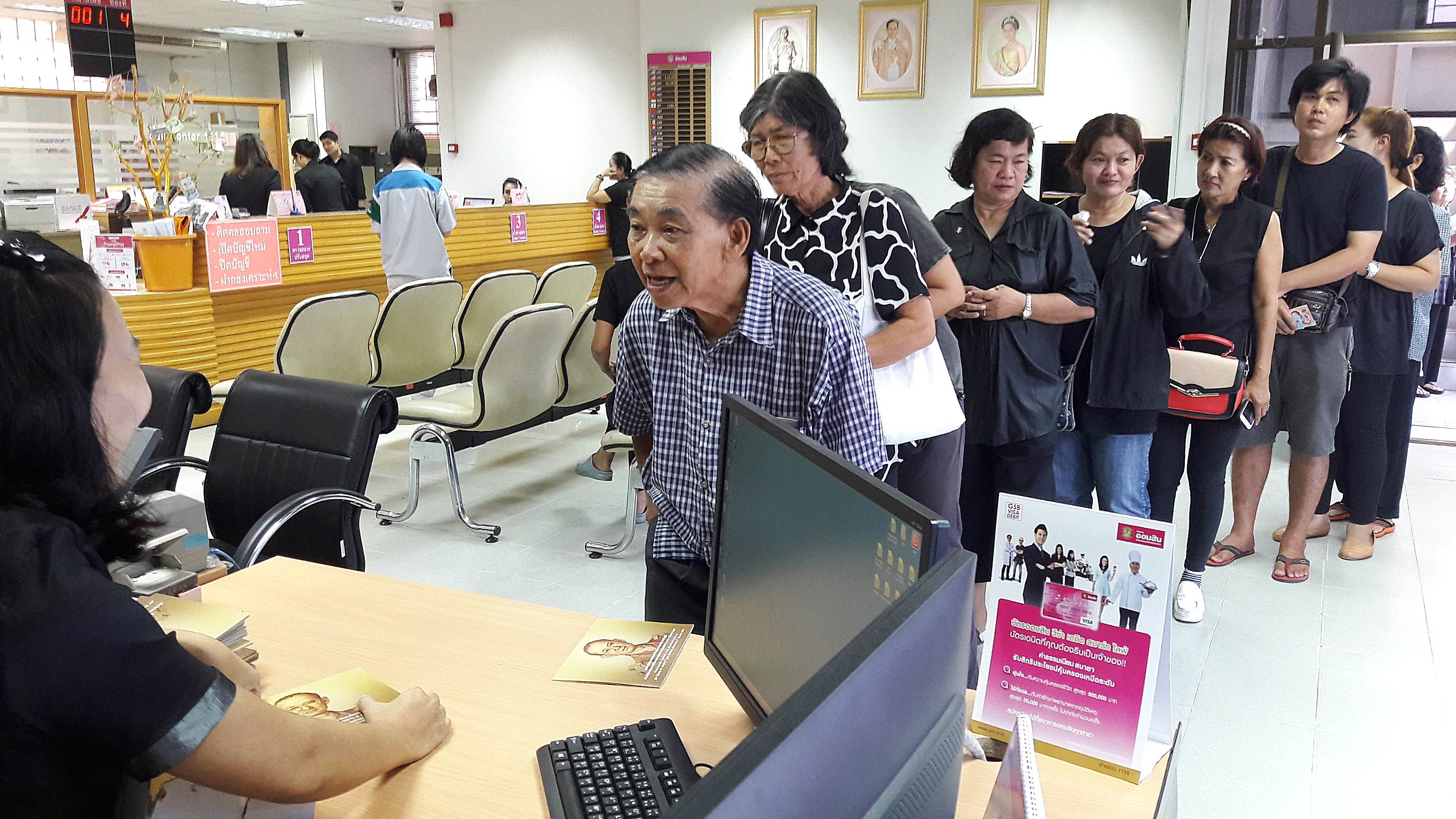วันนี้(26 ตุลาคม 2559) บรรยากาศที่ด้านหน้าธนาคารออมสิน สาขาศรีราชา อ.ศรีราชา จ.ชลบุรี มีประชาชนจำนวนมากได้พากันต่อแถวเพื่อแลกธนบัตรที่ระลึกในโอกาสเฉลิมพระชนมพรรษาครบ 7 รอบ 84 พรรษา เมื่อปี พ.ศ.2554 ซึ่งธนาคารออมสิน ได้นำออกมาให้ประชาชนได้แลก จำนวน 100 ชุด แต่มีประชาชนกว่า 300 คน มาต่อแถวเพื่อต้องการแลกเก็บไว้เป็นที่ระลึกกันเป็นจำนวนมากจนแน่นธนาคาร.....