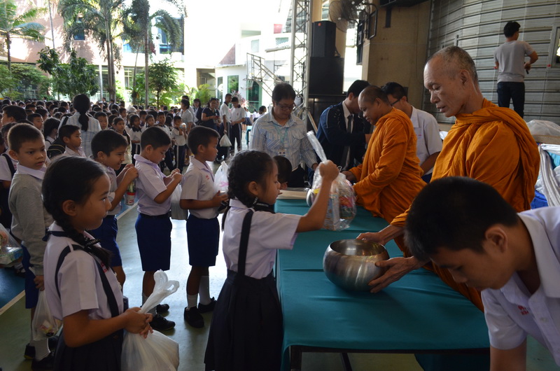 วันนี้(24 พ.ย. 2560) ที่ โรงเรียนดาราสมุทร ศรีราชา นางสาวนิตยารัตน์ คชเสนา ผู้ช่วยฝ่ายวิชาการโรงเรียนดาราสมุทร ศรีราชา เป็นประธาน ฝ่ายฆราวาส จุดธูปเทียนบูชาพระรัตนตรัย โดยนิมนต์ พระครู สมุหวิวัฒน์ เจ้าอาวาสวัดห้วยกรุ และคณะพระภิกษุสงฆ์ จำนวน 22 รูป ประกอบพิธีการทางศาสนา เพื่อความเป็นสิริมงคล แก่สถานศึกษา คณะครู อาจารย์ และนักเรียนในทุกระดับชั้น เนื่องในวันสถาปนาครบรอบ 81 ปี การดำเนินกิจการเพื่อการศึกษา โรงเรียนดาราสมุทรศรีราชา โดยจัดให้กิจกรรมทางศาสนาทั้ง พิธีกรรมทางศาสนาพุทธ และ ศาสนาคริสต์ มีกิจกรรมทำบุญตักบาตรข้าวสารอาหารแห้ง และพิธีมิสซาบูชาพระผู้เป็นเจ้า ซึ่งเครื่องอุปโภค บริโภค ข้าวสาร อาหารแห้งบางส่วนที่ได้จากการทำบุญ ใส่บาตร จากนักเรียนวันนี้ คณะสงฆ์ จะนำกลับไปบริจาคให้กับผู้ด้อยโอกาส ศูนย์พัฒนาเด็กเล็กวัดรังสีสุทธาวาส ผู้ประสบภัยทางทะเล ผู้ป่วยติดเตียง และศูนย์คาบิลเรียล เซเชียล เซนเตอร์ เพื่อนำไปใช้ประโยชน์ต่อไป